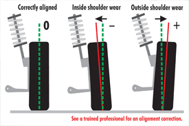 Wheel Alignment Whenever new tires are installed, unusual tire wear appears, your car has encountered a curb, or suspension components are installed, the wheel alignment of your car should be checked. An incorrect wheel alignment can cause rapid tire wear and damage.